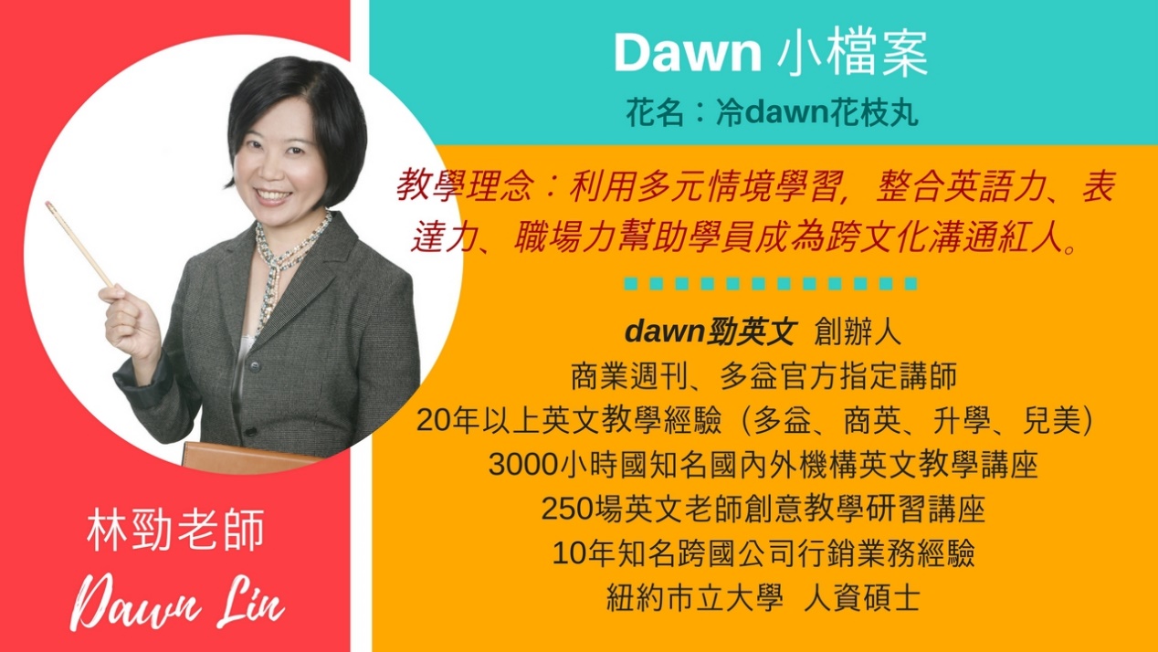 一起來聆聽Dawn老師精彩的人生故事~