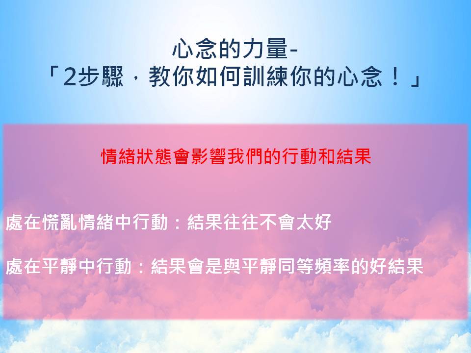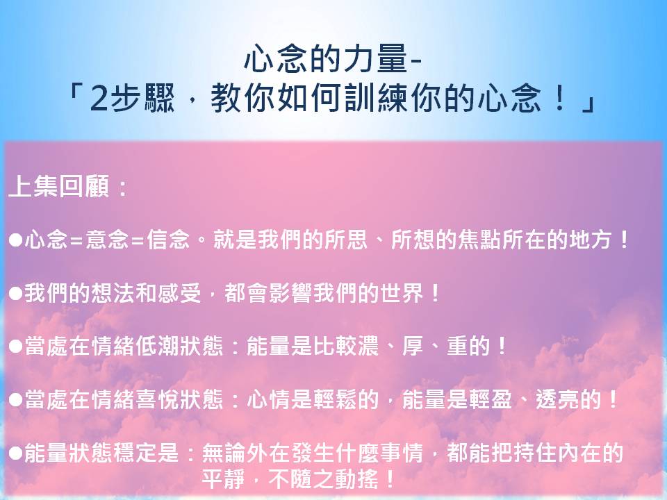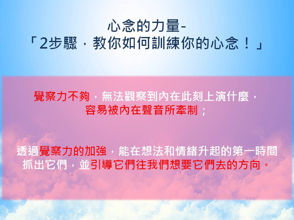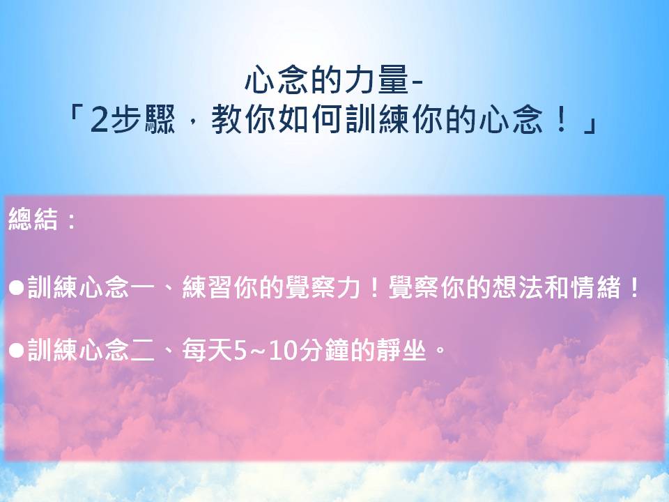 今天心念的力量-「2步驟,教你如何訓練你的心念!」,就到這裡囉!
