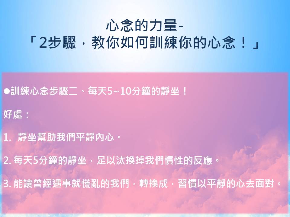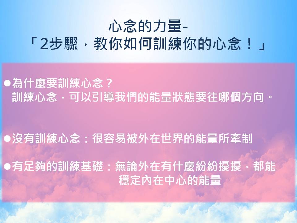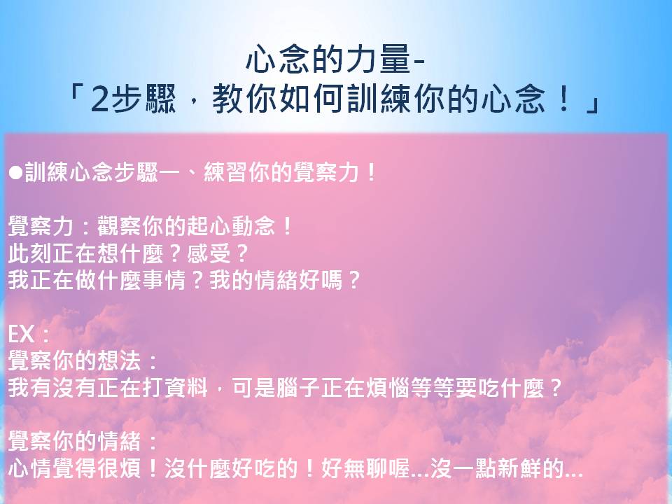而今天要告訴你「2步驟,教你如何訓練你的心念!」