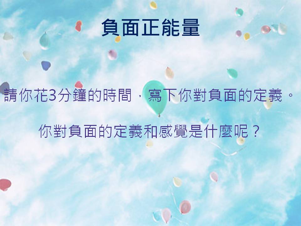 在開始分享前,我想請你花個3分鐘的時間,拿紙筆寫下你對負面的定義。