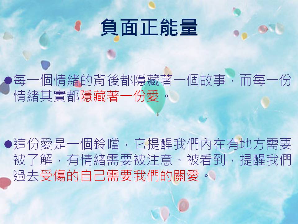剛剛我們說到每一個情緒的背後都隱藏著一個故事,而每一份情緒其實都隱藏著一份愛。