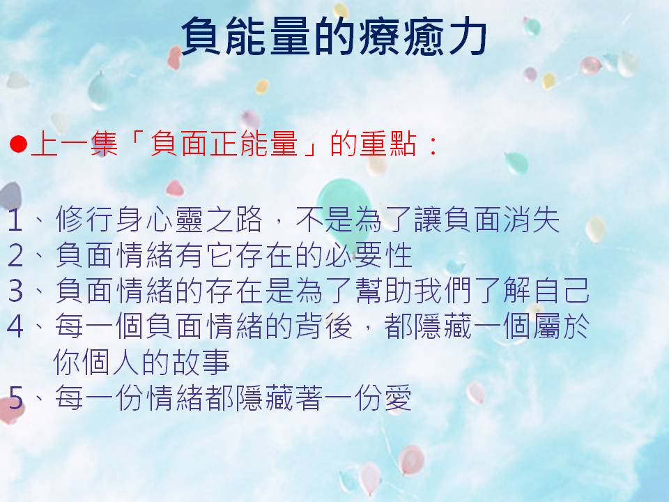 今天想與你分享的內容是:負能量的療癒力