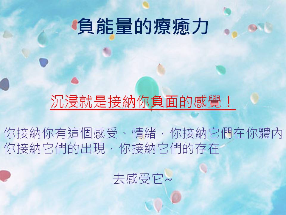 2、沉浸在負面的感受,就是接納你負面的感覺!它是有療癒力量的!