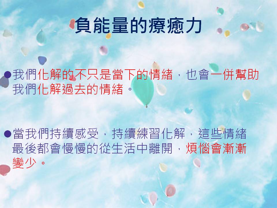 當我們持續感受,持續練習化解,這些情緒最後都會慢慢的從生活中離開,你的煩惱也會漸漸變少。