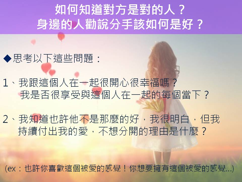 心宇愛-幸福引航家:親密關係-如何知道對方是對的人?身邊的人勸說分手該如何是好?