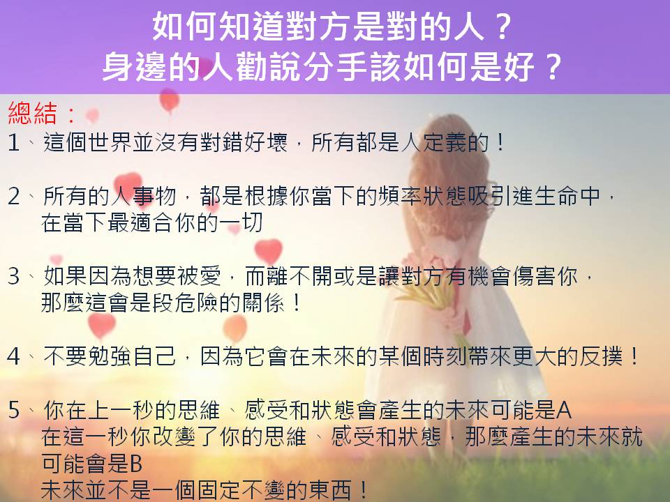 2、所有的人事物,都是根據你當下的頻率狀態吸引進生命中,都是在當下最適合你的一切