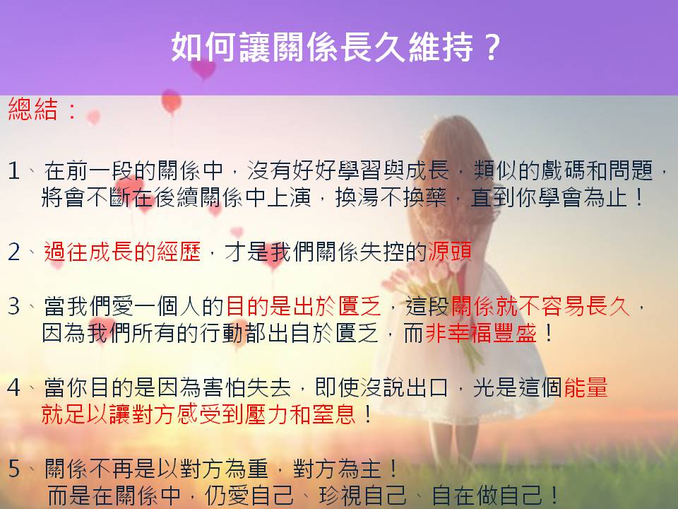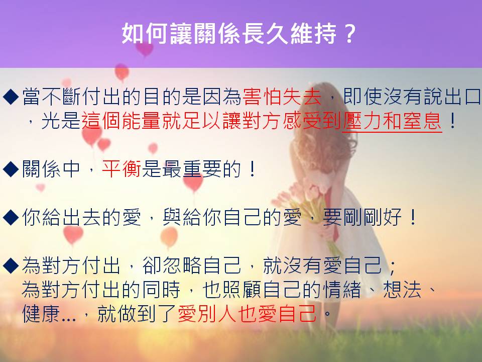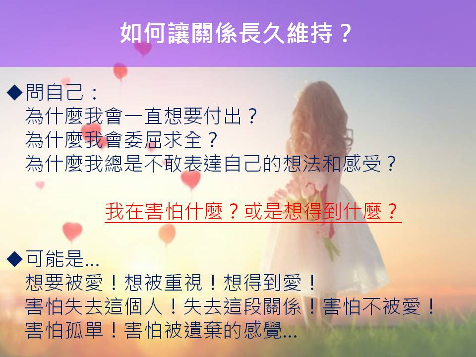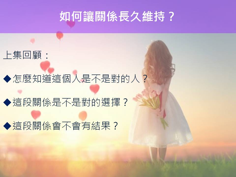 而今天我想與你分享的是,如何讓關係長久維持?