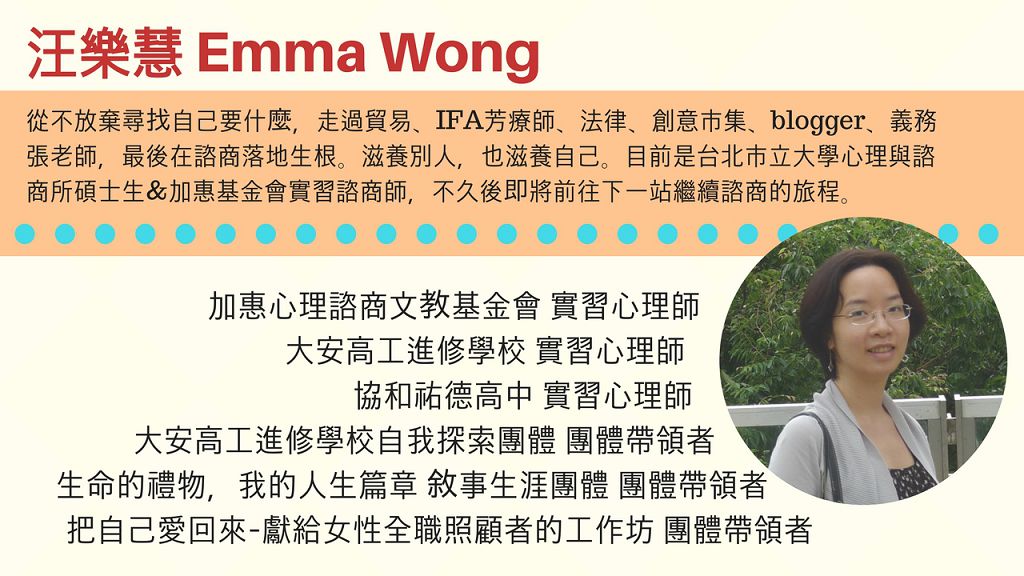 訪談來賓: 汪樂慧Emma Wong 實習心理師