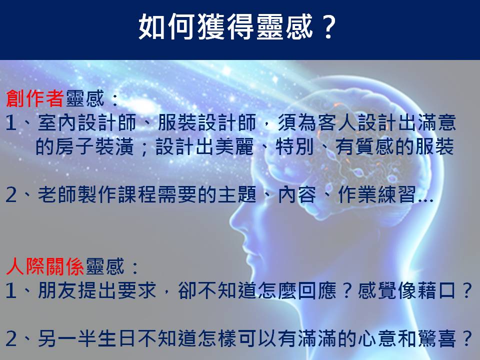 從上面的例子中,就可以知道每個人在生活中,其實都會需要靈感。