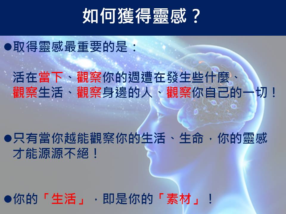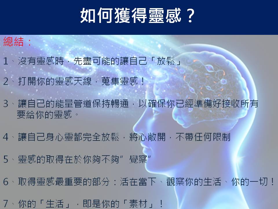 今天要跟你分享的是:啟動你的靈感天線-如何獲得靈感?
