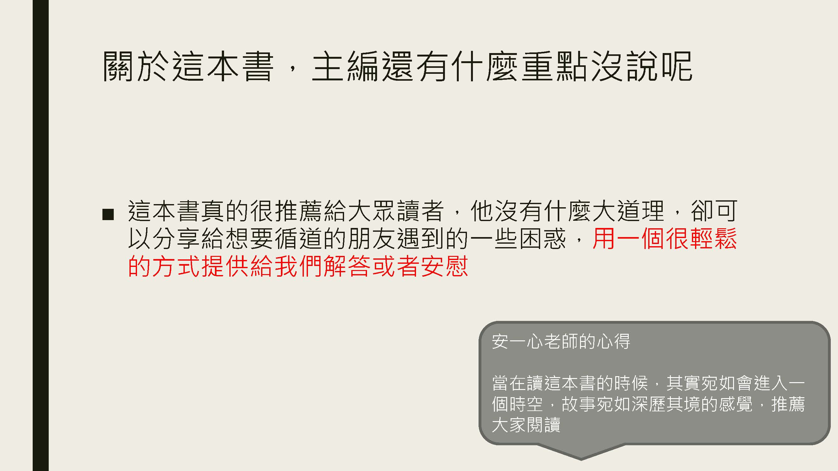 5.     關於這本書,主編還有什麼重點沒說呢
