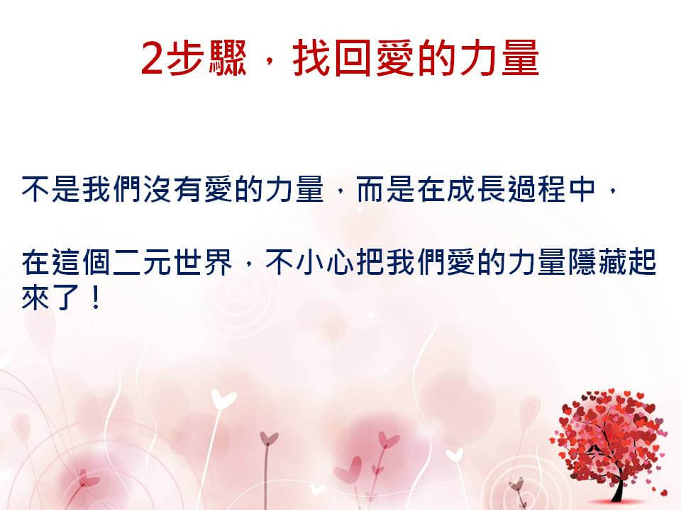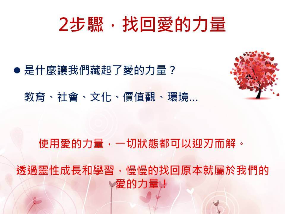 2、透過靈性成長和學習,慢慢的找回原本就屬於我們的愛的力量!