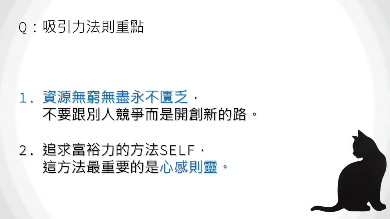2. 追求富裕力的方法SELF,這方法最重要的是心感則靈。