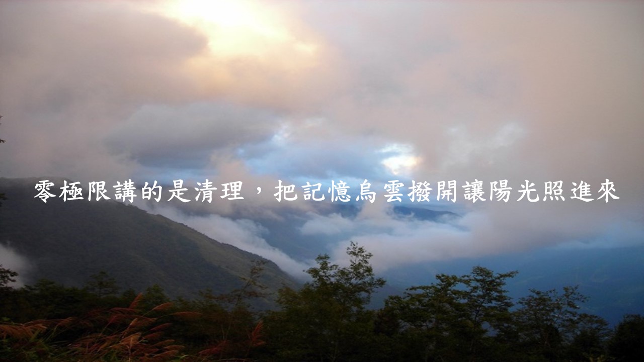 4. 零極限講的是清理,把記憶烏雲撥開讓陽光照進來