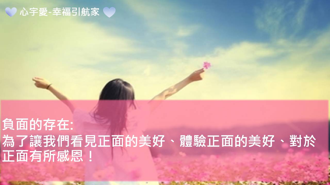 負面的存在,是為了讓我們體驗正面的美好!