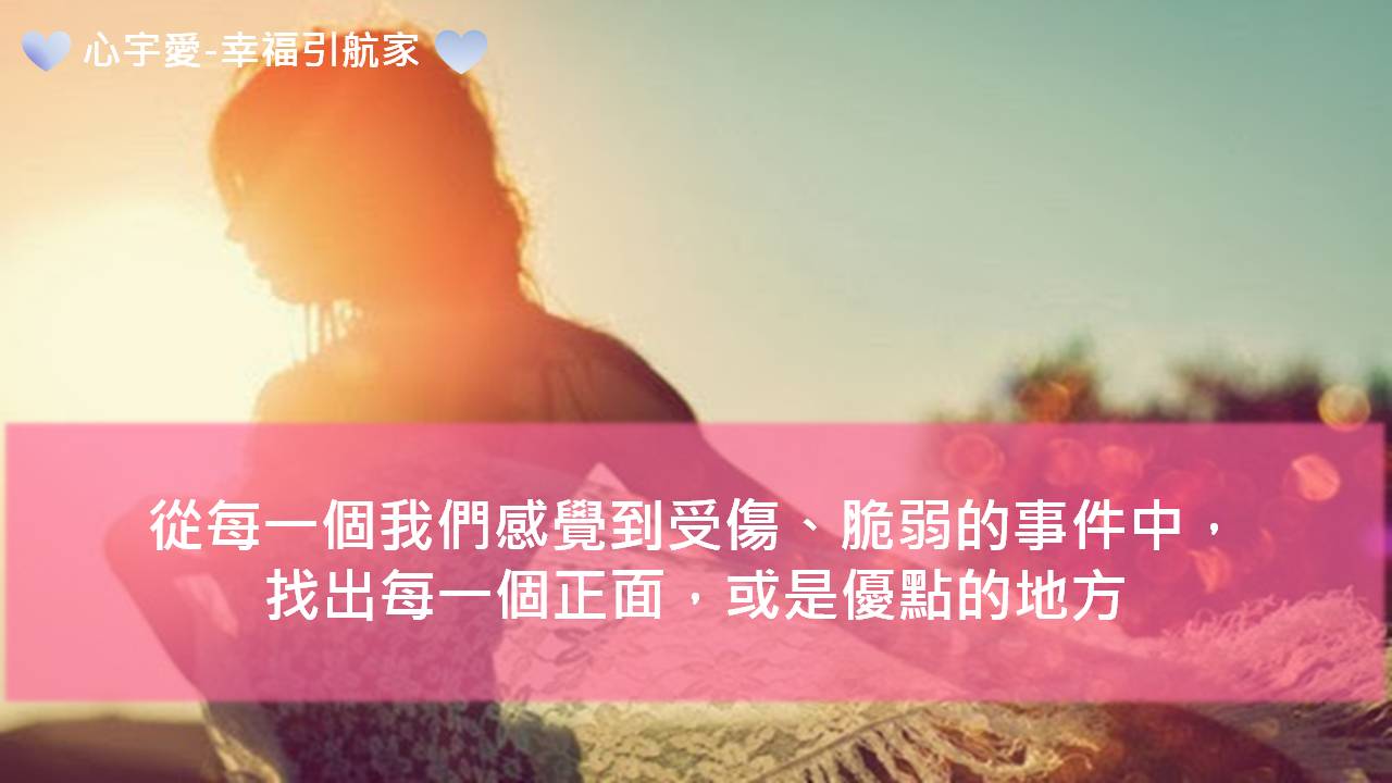 如果你在這個事件中感受到負面,那也代表它同時存在著正面,而我們就是從每一個我們感覺到受傷、脆弱的事件中,找出他每一個正面,或是優點的地方。