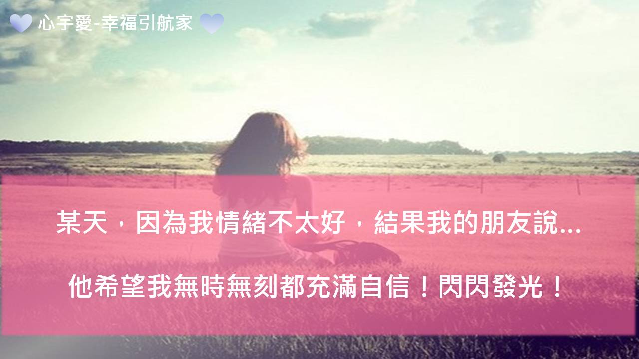 某天,因為我情緒不太好,結果我的朋友說,他希望我無時無刻都充滿自信!閃閃發光!