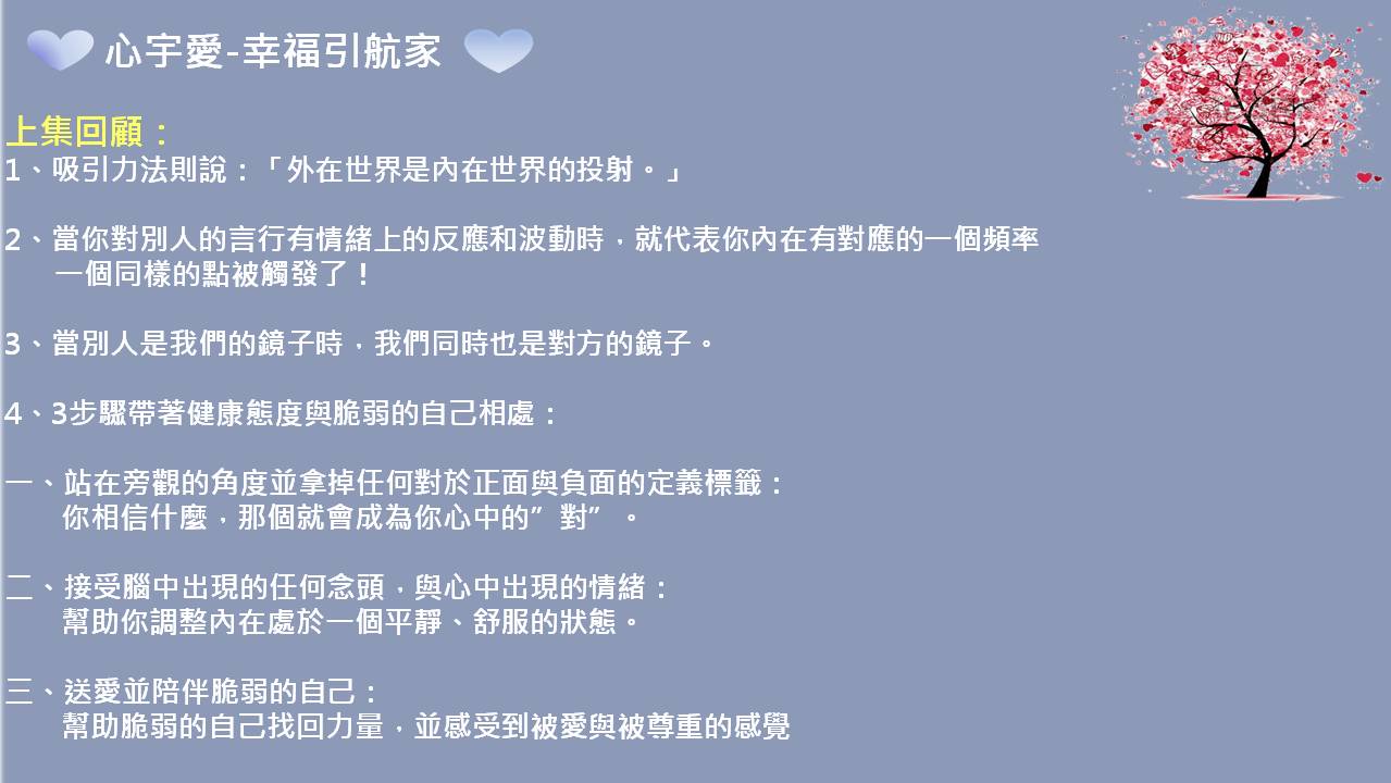 在分享今天的內容之前,我們先來回顧一下上一集「如何與脆弱的自己和平相處?」的內容。