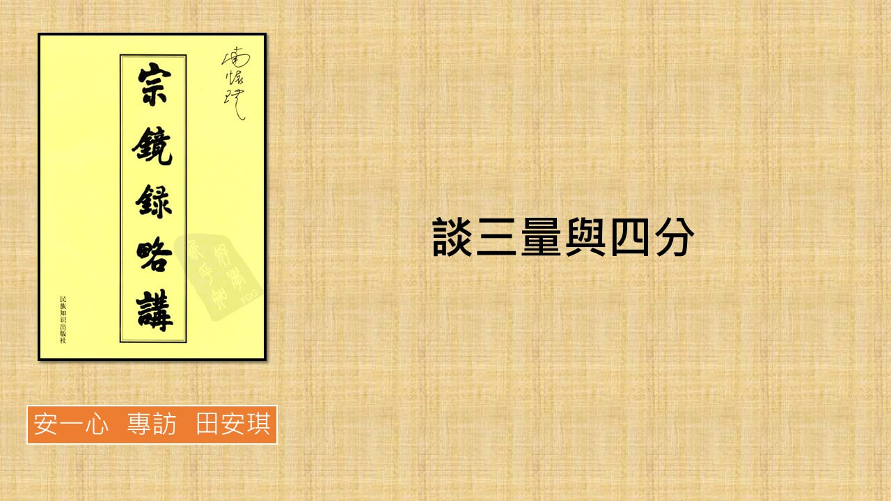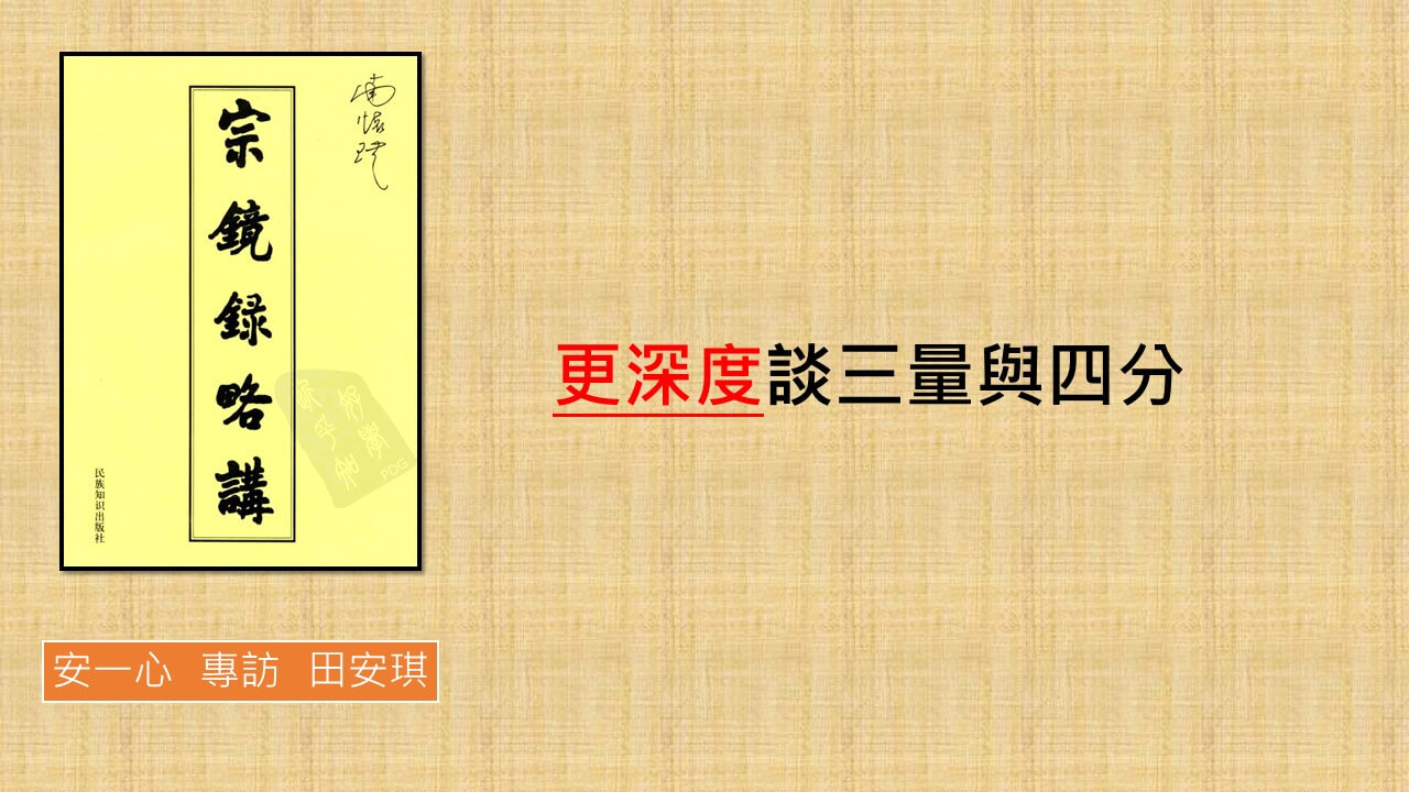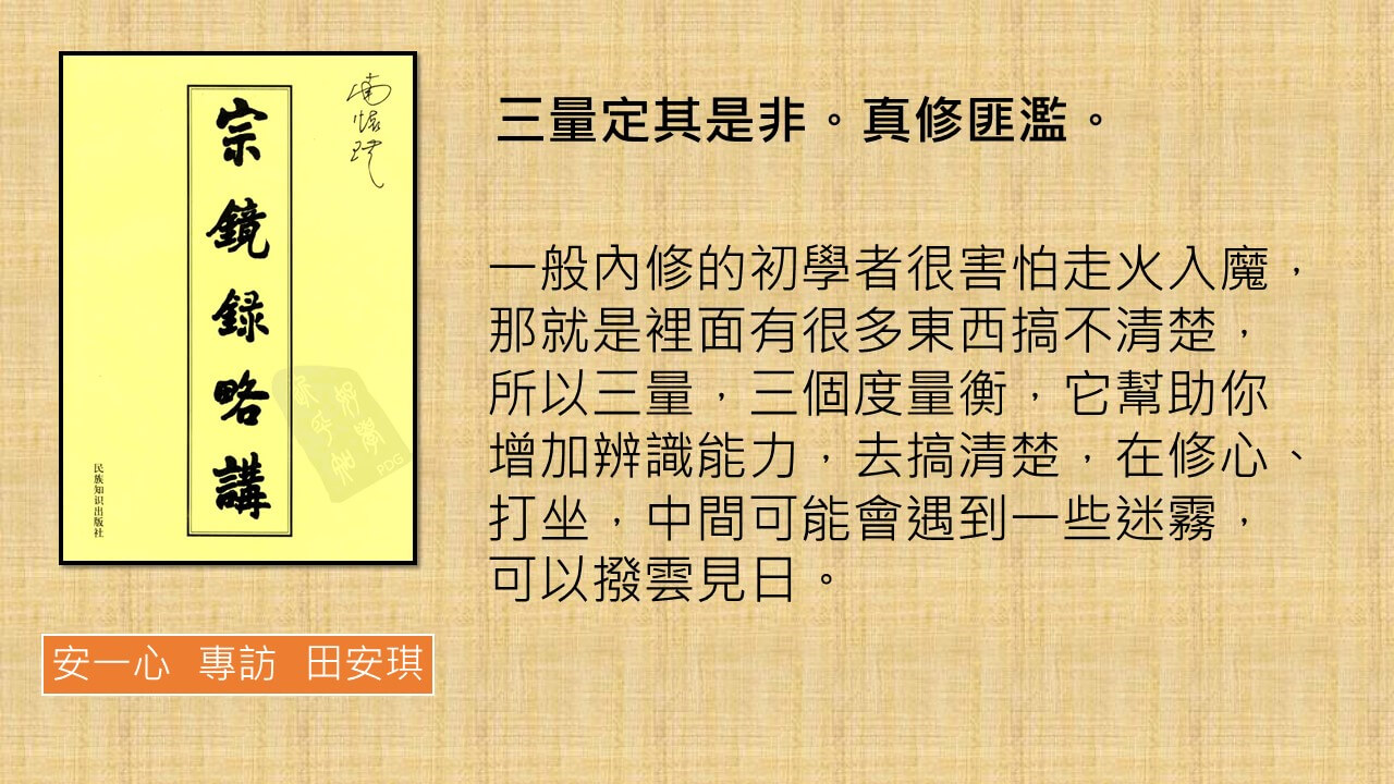 上一集談到宗鏡錄前言裡面一段話,我取一段,覺得很實用的,再重述一遍,三量定其是非。真修匪濫。三量上一集已經講過哪三量,新的聽眾可以再回去找,知道的話對辨識能力很有幫助。
