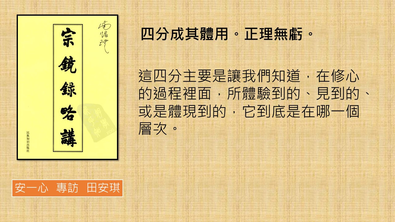 這四分主要是讓我們知道,在修心的過程裡面,所體驗到的、見到的、或是體現到的,它到底是在哪一個層次。