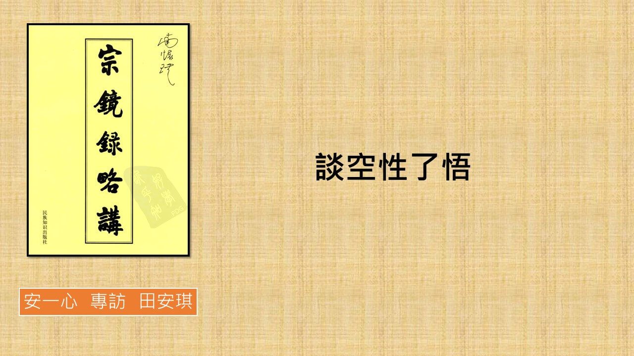 安琪: 謝謝一心,我有點拾人牙慧,看的是宗鏡錄略講,而不是宗鏡錄本文,略講是由南懷瑾講的 ,透過他的講述,就很容易懂,跟一心談時,就把它更白話一點!