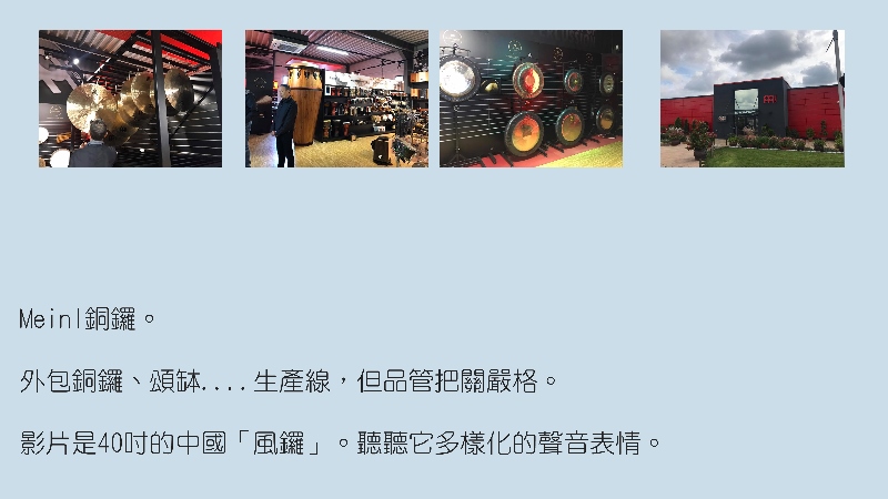 Gordon和逸琳在好奇心和求知慾的驅使下,去年秋天展開德國4大銅鑼品牌的造訪之旅。一個個鑼做了近百個的記錄影片。在這次的廣播中,我們公正、客觀地分享我們的經驗,並且各挑選一個影片給大家聆聽和觀賞。