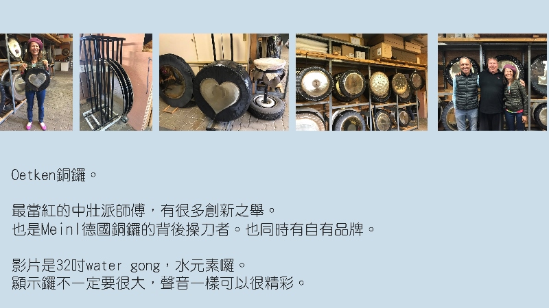 聲音療癒樂器裡,銅鑼成了最近10年的領頭羊。愈來愈多人用銅鑼做聲音療癒。德國師傅和品牌及產品更是百花齊放。即使是一般銅鑼工作者,也都快跟不上新發展了。