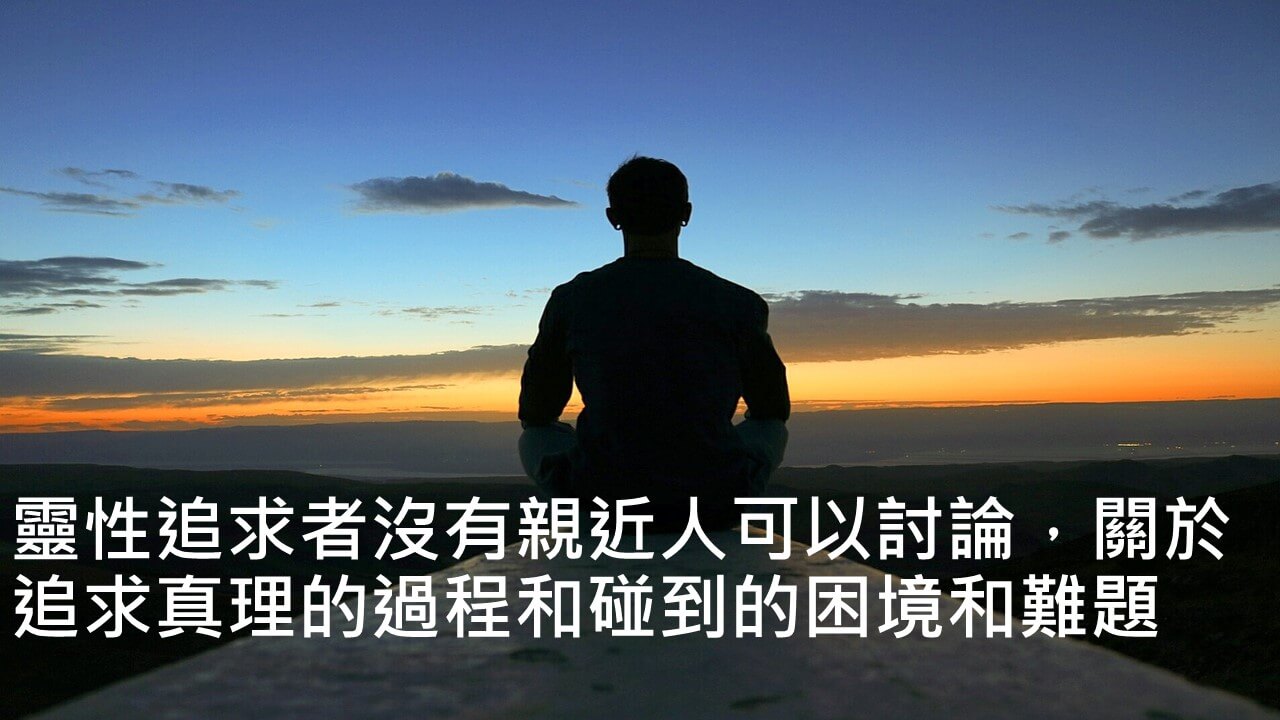 1.靈性追求者沒有親近人可以討論,關於追求真理的過程和碰到的困境和難題。