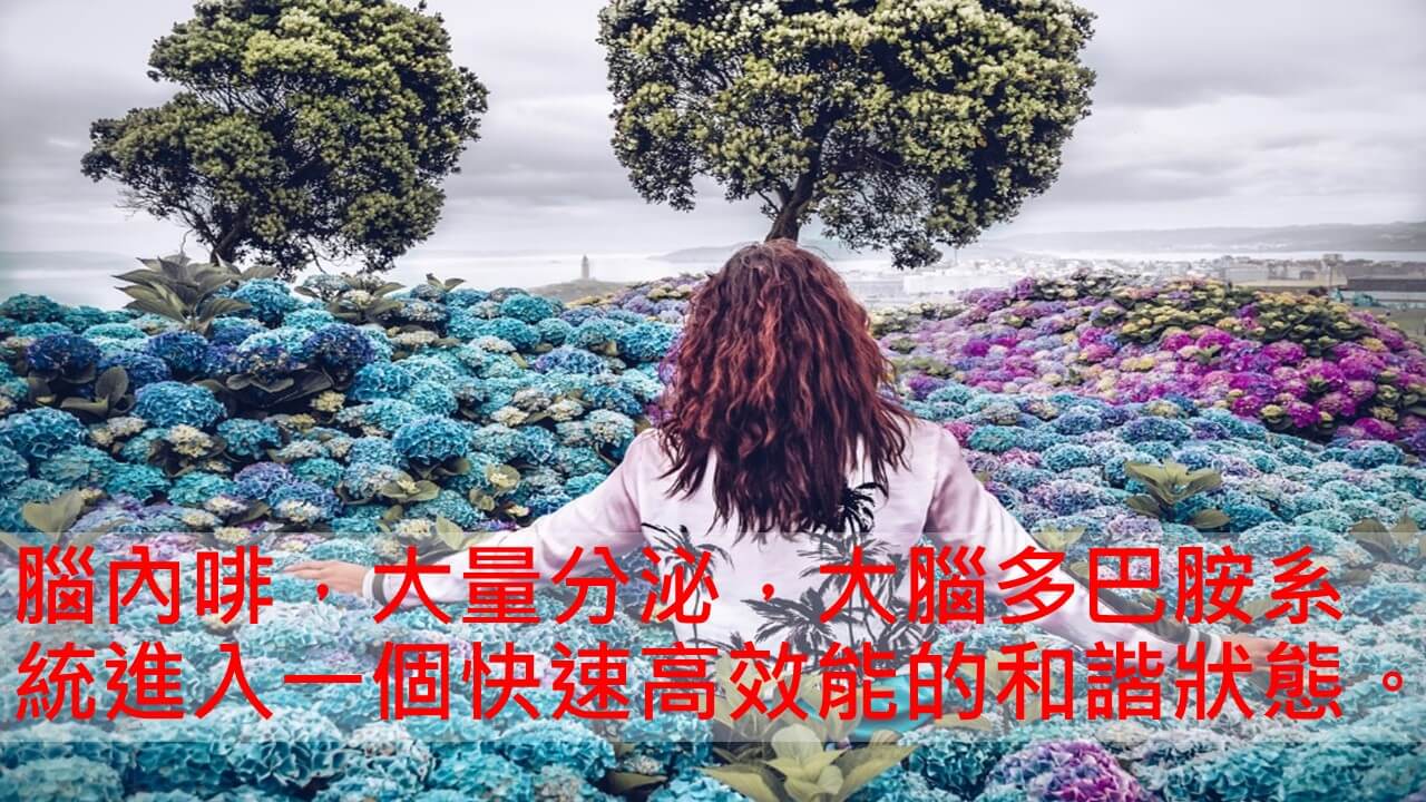 9.腦內啡大量分泌,大腦的多巴胺系統會進入一個快速高效能的和諧狀態。