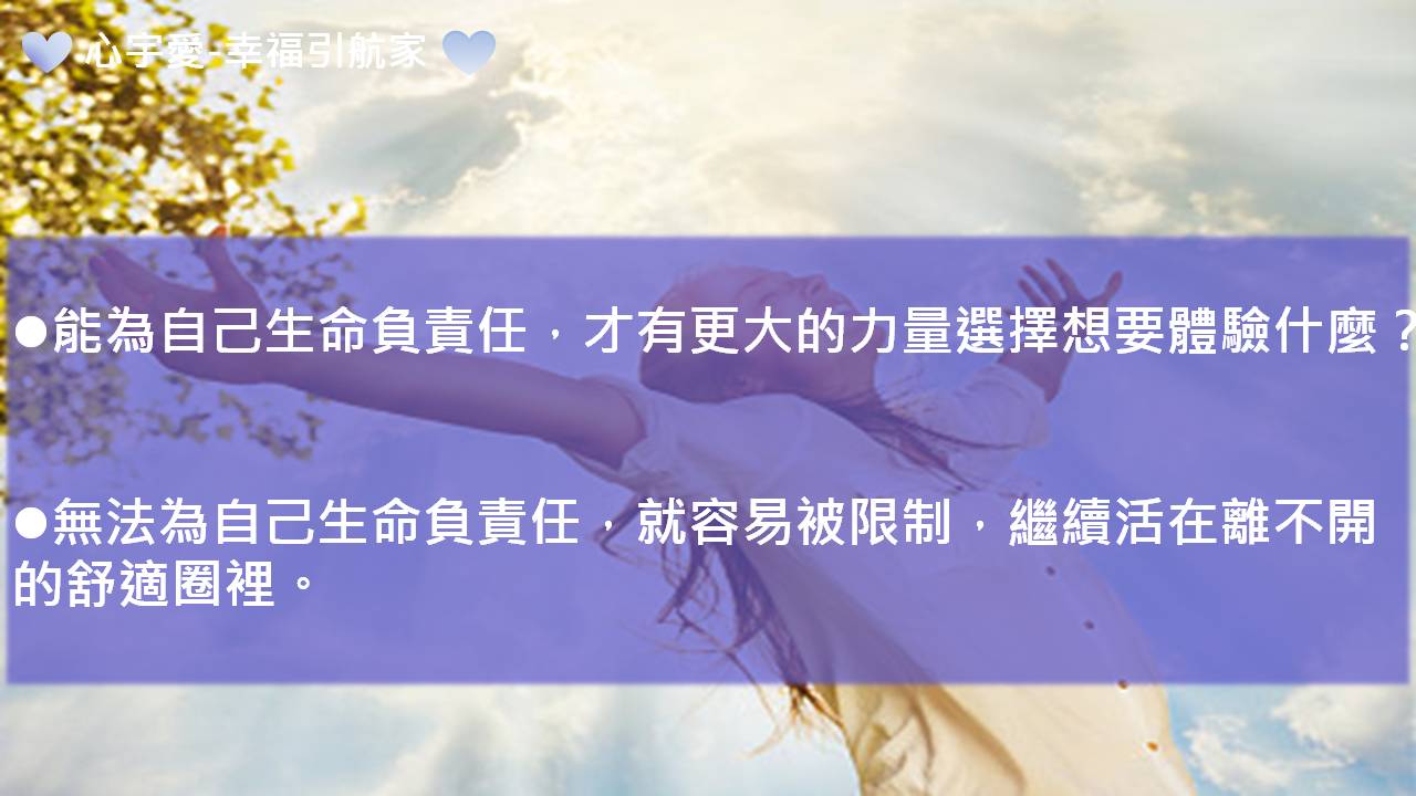 能為自己生命真正負起責任的人,才有更大的力量可以去選擇想要體驗什麼?