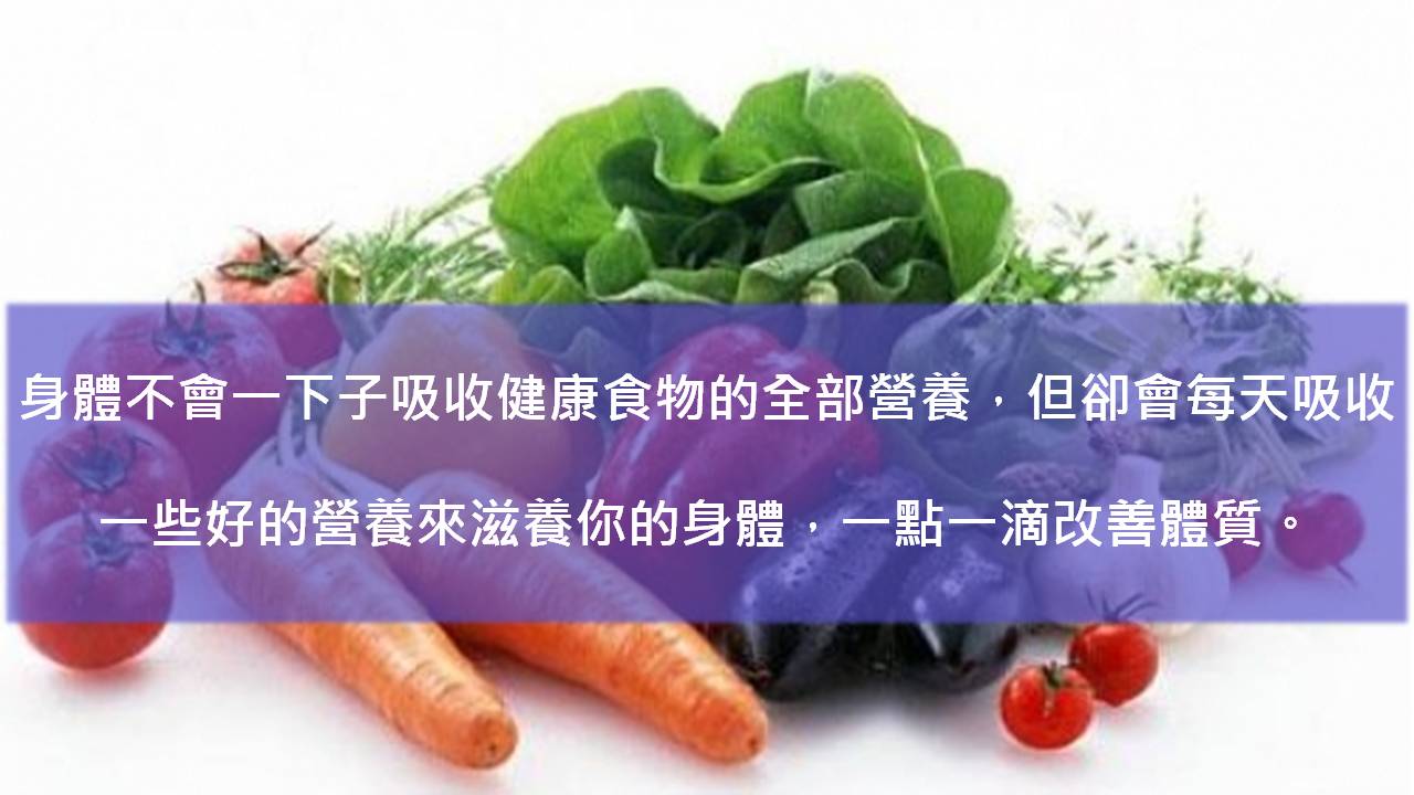 就像是你吃健康的食物,你的身體不會一下子吸收全部的營養,但卻會每天吸收一些好的營養來滋養你的身體,然後一點一滴改善你的體質是一樣的意思。