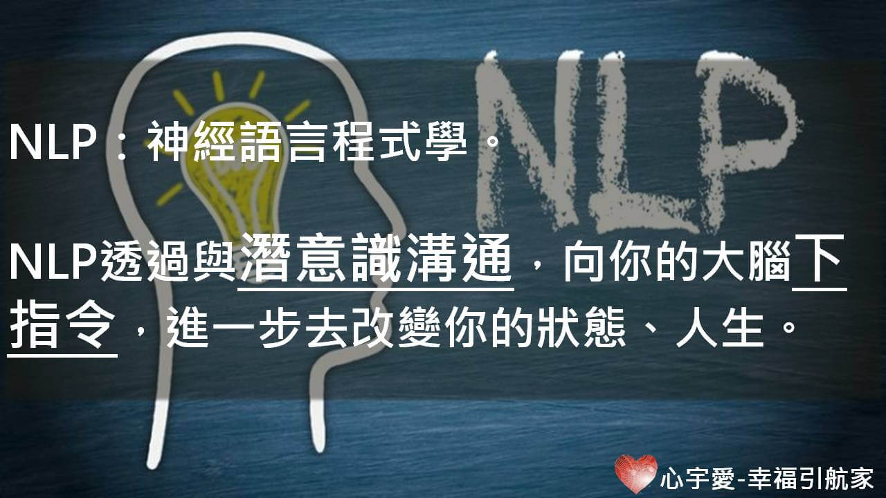 我所理解的NLP是與潛意識溝通,它可以向你的大腦下指令,進一步去改變你的狀態、人生
