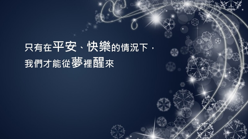 3.只有在平安、快樂的情況下,我們才能從夢裡醒來。