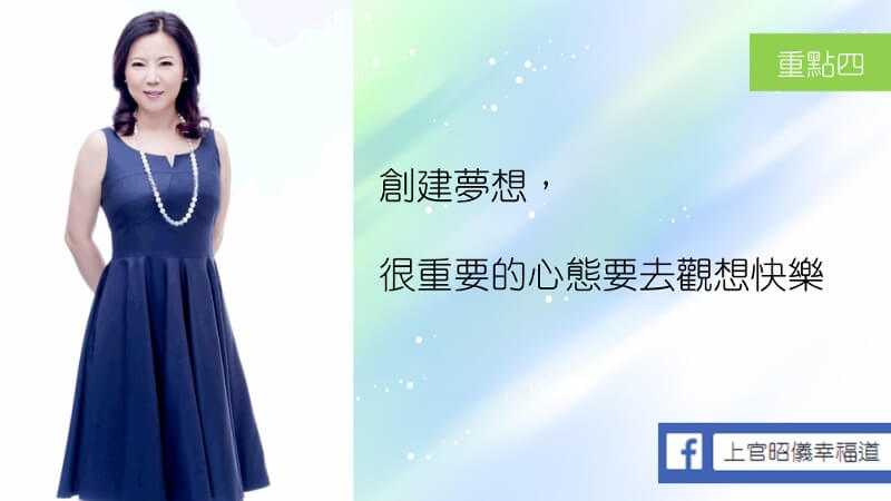 這非常好的問題,創建夢想,有一個很重要的心態,就是你一定要去「觀想快樂」。
