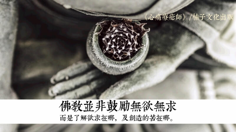 這真的是大家對佛教的一個錯誤的認知,佛教並不是鼓勵人無欲無求,而是了解你的欲在哪裡,求在哪裡,以及你創造的苦在哪裡。
