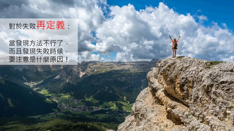 另外一個心法,是在說失敗不是失敗,失敗是你發現了這個方法行不通,而且你發現的時候,真的要注意!