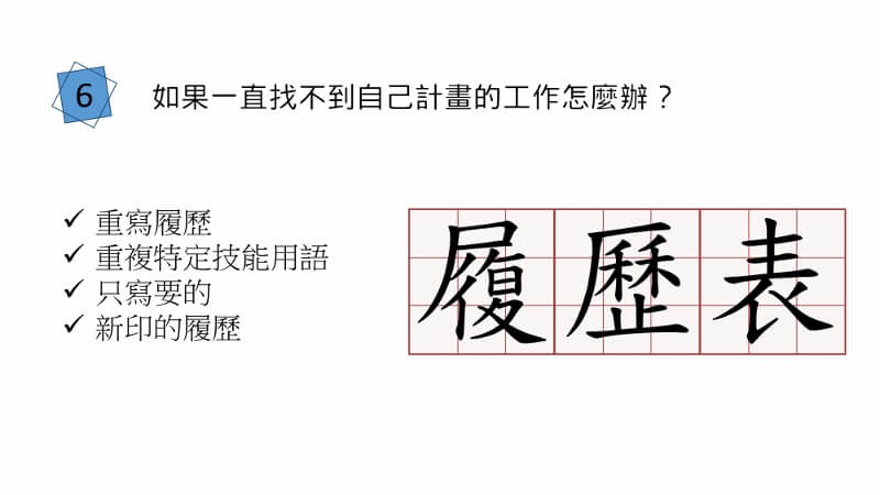 六.如果一直找不到自己計畫的工作怎麼辦?