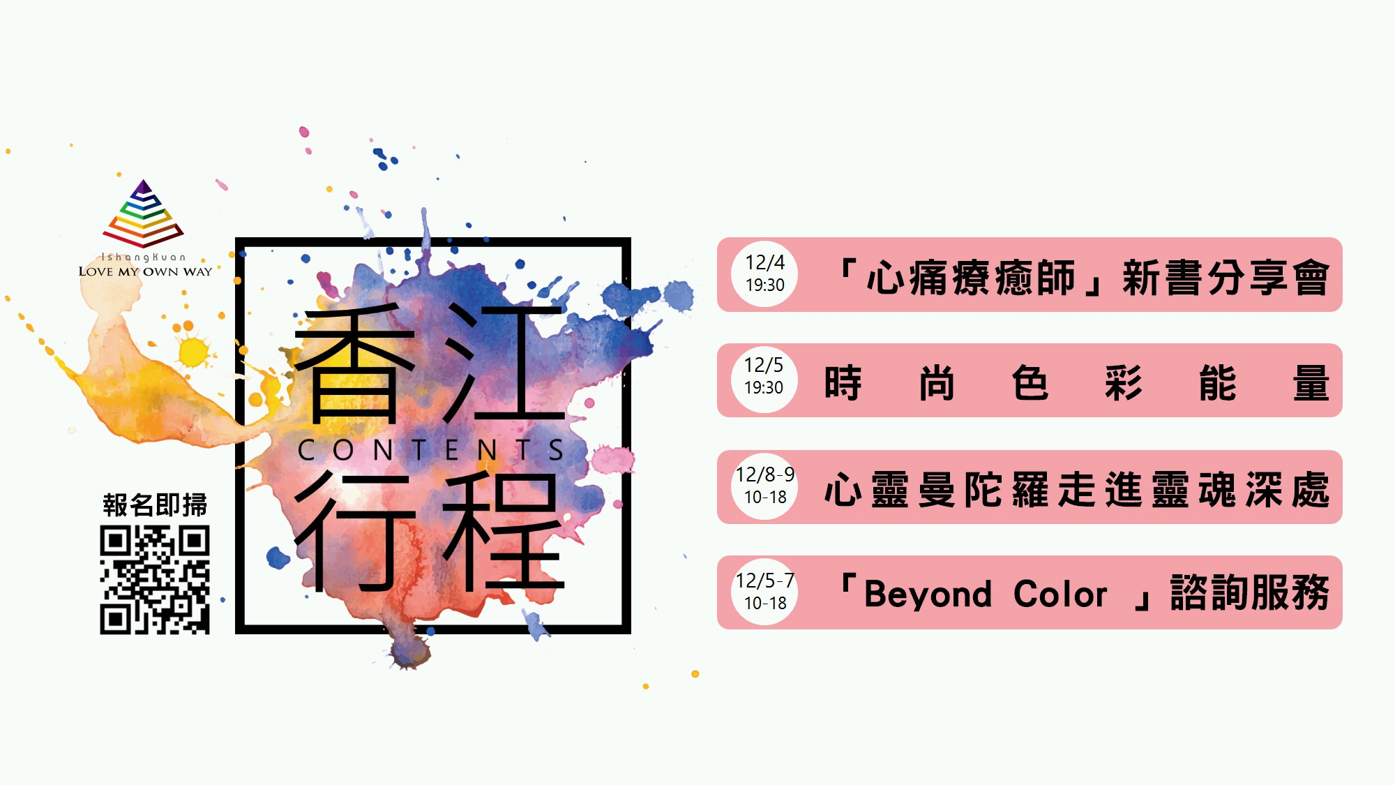 主持人:也就是說,接下來的12月期間,會有相當豐富的色彩能量之旅,在香港舉辦!老師可以幫聽眾朋友分享ㄧ下,大概是什麼時間點會舉辦呢