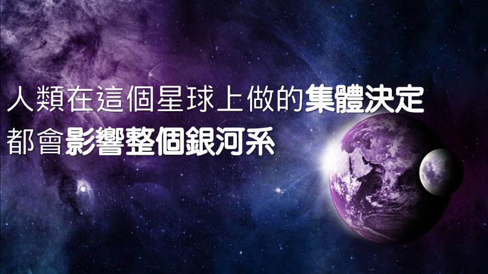 因為人類在這個星球上面做的任何的集體的決定,最後都會影響到整個銀河系