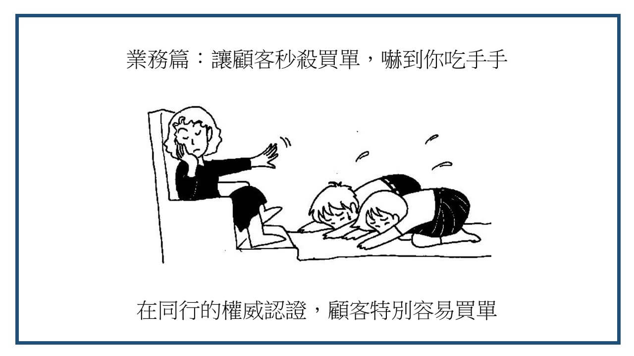 在銷售的過程中,要去說服顧客,見證這個東西真的有效,有一個更厲害的方法,找你更有權威的顧客,舉一個例子,像我們是賣培訓的公司,