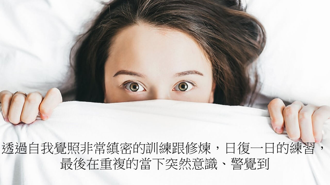 簡單來說,就是透過一種自我覺照的訓練跟修煉,必須非常縝密的,日復一日的一再一再練習,怎麼做自我覺察,才有辦法慢慢地透過不知不覺,