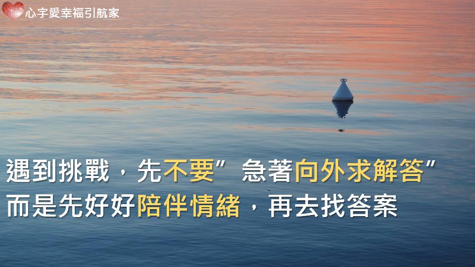 因此,如果你正遇到生命中的挑戰,建議你先不要”急著向外求解答”,而是先好好的陪伴你的情緒,讓情緒緩和之後再去找答案,這時候的答案才會是真正對你有幫助的!