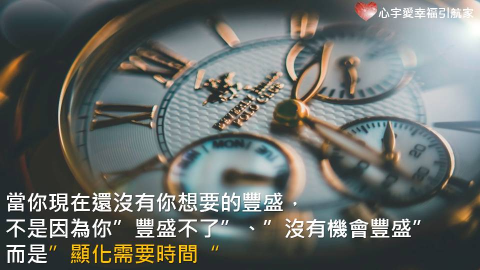 所以,當你現在還沒有你想要的豐盛,不是因為你”豐盛不了”、”沒有機會豐盛”,而是”顯化需要時間”。