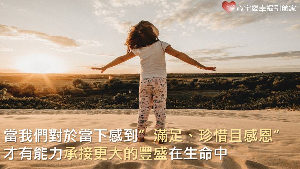只有當我們對於當下感到”滿足、珍惜且感恩”的時候,我們才有能力承接更大的豐盛在生命中。