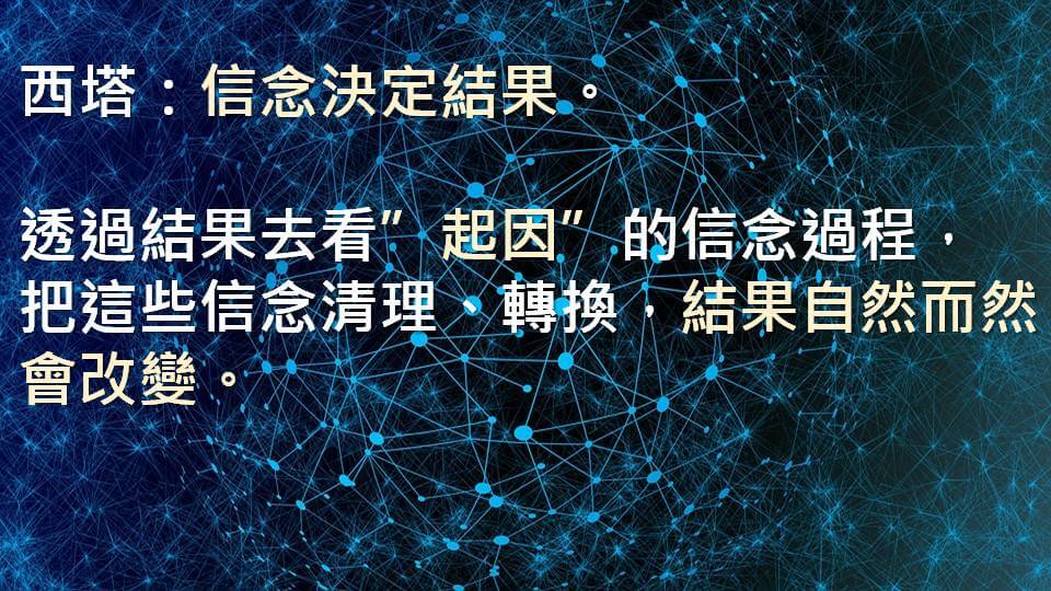 希塔是一個透過結果去看所造成結果原因的信念過程,並且把這個信念清理掉、轉換掉,而結果自然而然改變。