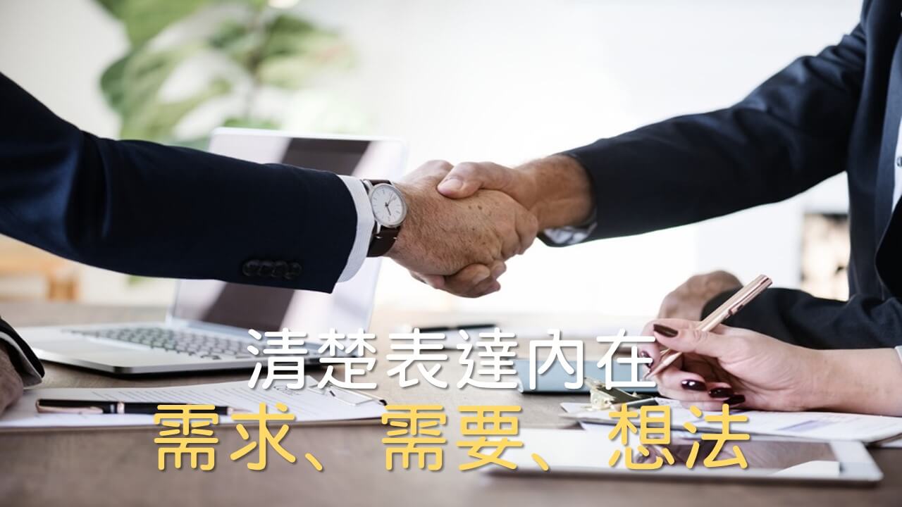 我可以很清楚表達我的內在需求、需要、想法,我可以內外一致性的表達出來,但是,我可以考慮到對方這個人,他的內在情況,