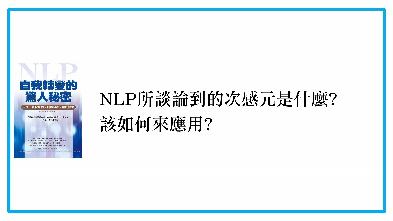 那可不可以請老師直接跟聽眾分享一下,這本書NLP裡面的次感元到底在談什麼,大概要怎麼來應用呢?