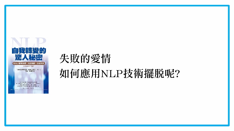 NLP很簡單,但是很多人都覺得沒有耐心,我看到很多人上完NLP,為什麼過一陣子說我沒有改變阿?