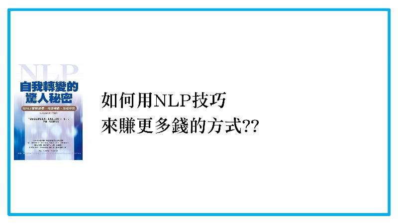 最後請老師來跟我們講一下也是大家非常喜歡的議題,怎麼樣達成賺更多錢的練習,用NLP的方式。