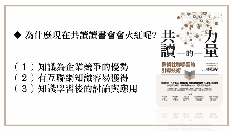 二.讀書會火紅三個主要的原因